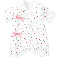 いちごのイラストが施された、かわいい柄のコンビ肌着です。上質なフライス素材で作られており、着心地も抜群です。デリケートな赤ちゃんの肌にも優しい外縫い仕様で、掛け違い防止のボタンも付けられています。ママや赤ちゃんのことが考えられた、優しいコンビ肌着です。