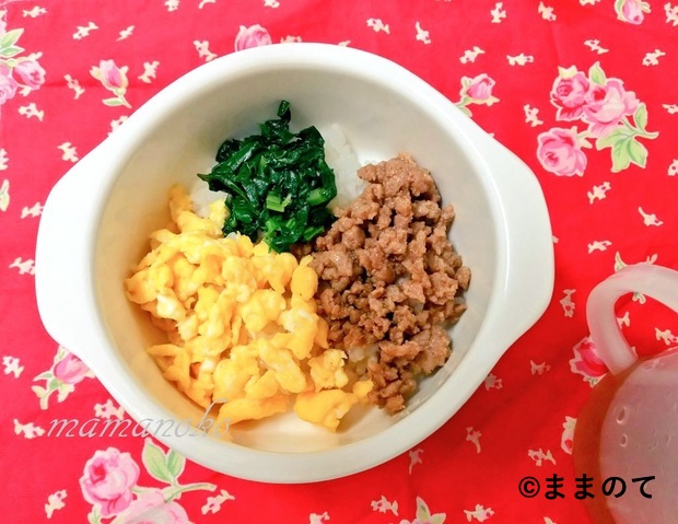 4.温かいご飯の上に、1・2・3を乗せてできあがり