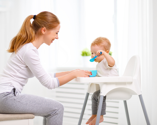 ママの手が離せなくても、赤ちゃんも家族と一緒に食事を摂ったほうがおいしく感じるはずです。自分でスプーンを使い自立して欲しいという気持ちがあっても、たまにはママが赤ちゃんの口に食事を与えてあげると喜ぶはずですよ。