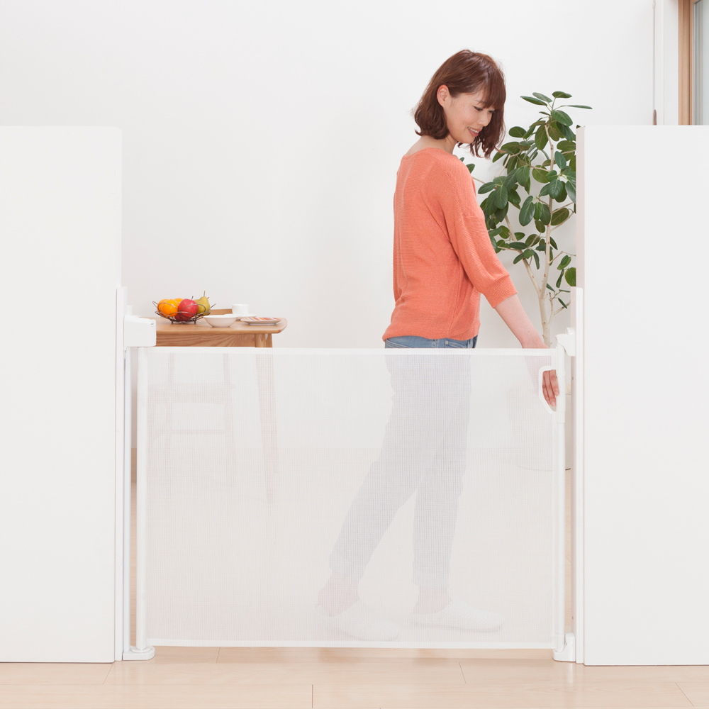 ロールタイプのベビーゲートです。メッシュ素材で圧迫感がなく、使わないときはすっきりとコンパクトに収納できるため、インテリアの雰囲気を壊しません。バリアフリーなのでママも赤ちゃんも安心です。