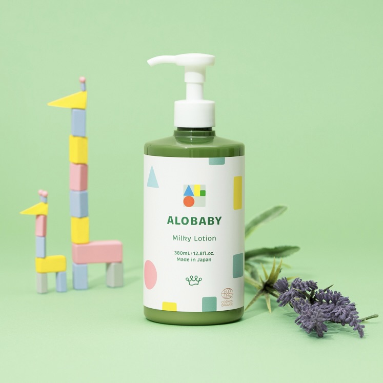 アロベビーのミルクローションは、新生児から使用可能な国産のベビーローションです。成分の99%以上がオリーブオイルやシア脂などの天然由来成分からできており、赤ちゃんの肌のうるおいをしっかりと保つことができます。