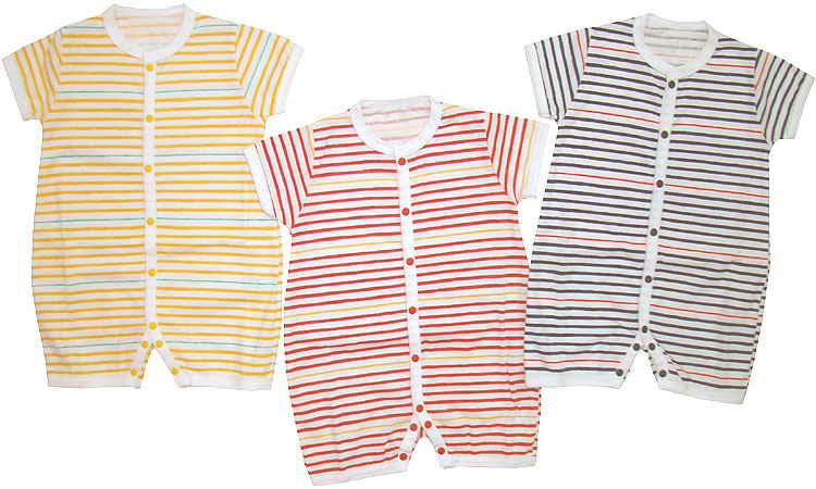 1.川端縫製 クレヨンボーダー半袖前開きロンパース