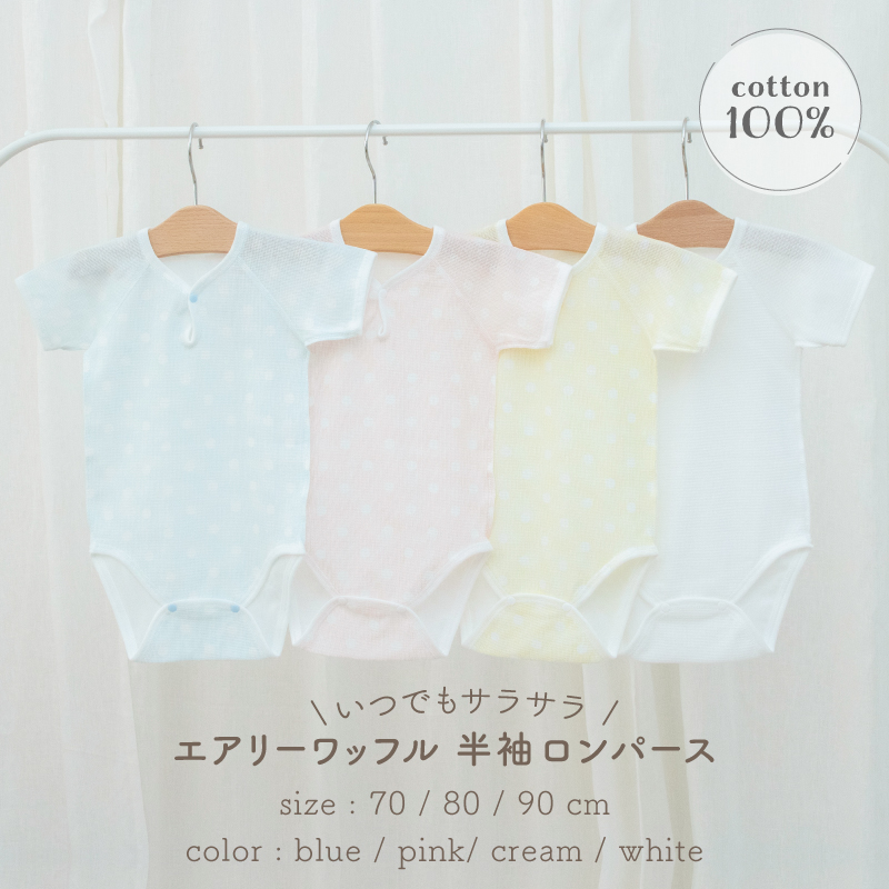 2.PUPO さらふわエアリーワッフル素材の半袖ロンパース