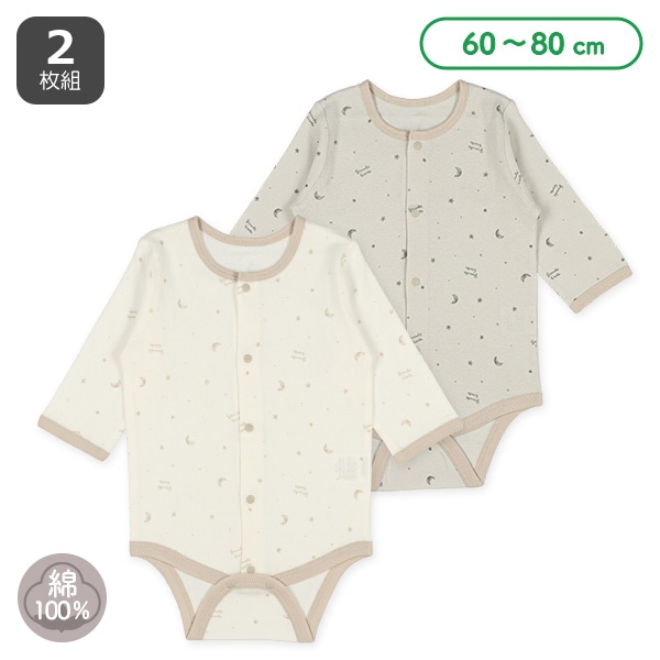 3.西松屋 2枚組フライス長袖前開きロンパース肌着(夜空)