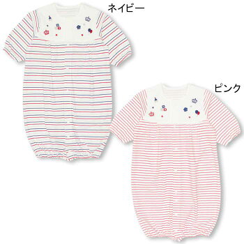 ドレス型とロンパース型の2タイプで着ることができる2WAYオールです。動きの少ないねんね期の赤ちゃんはおむつ替えがしやすいドレス型で、足が活発に動く時期になったらまたのスナップボタンを閉めてロンパース型で使うのがおすすめです。シンプルなボーダーと胸元の刺繍がおしゃれで飽きのこないデザインといえるでしょう。