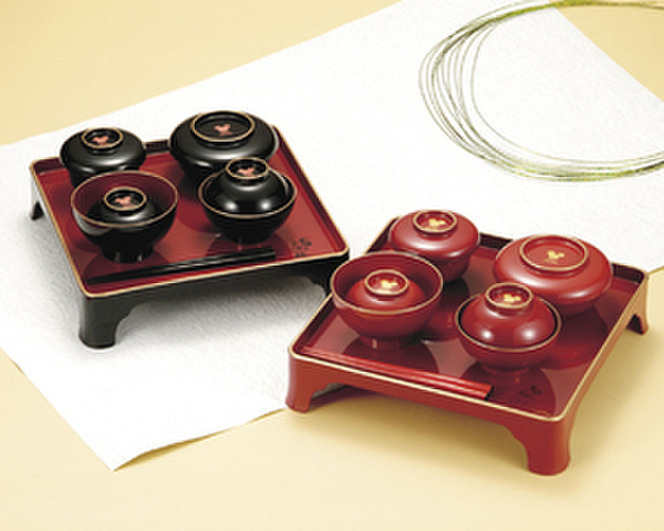 男の子と女の子では、器の色が異なり、男の子は内外とも朱塗の器、女の子は外側が黒塗り、内側が朱塗りの器と決められています。