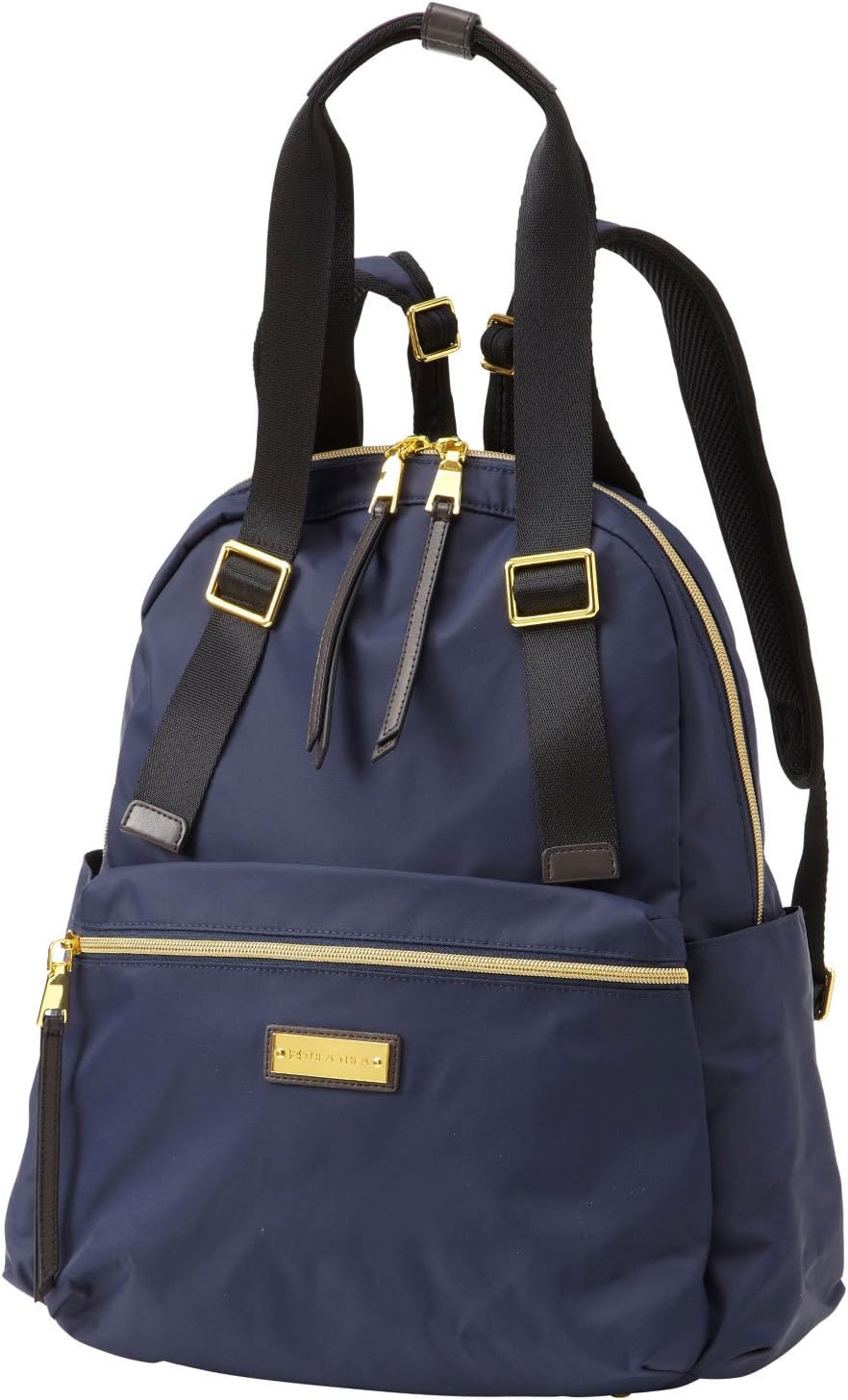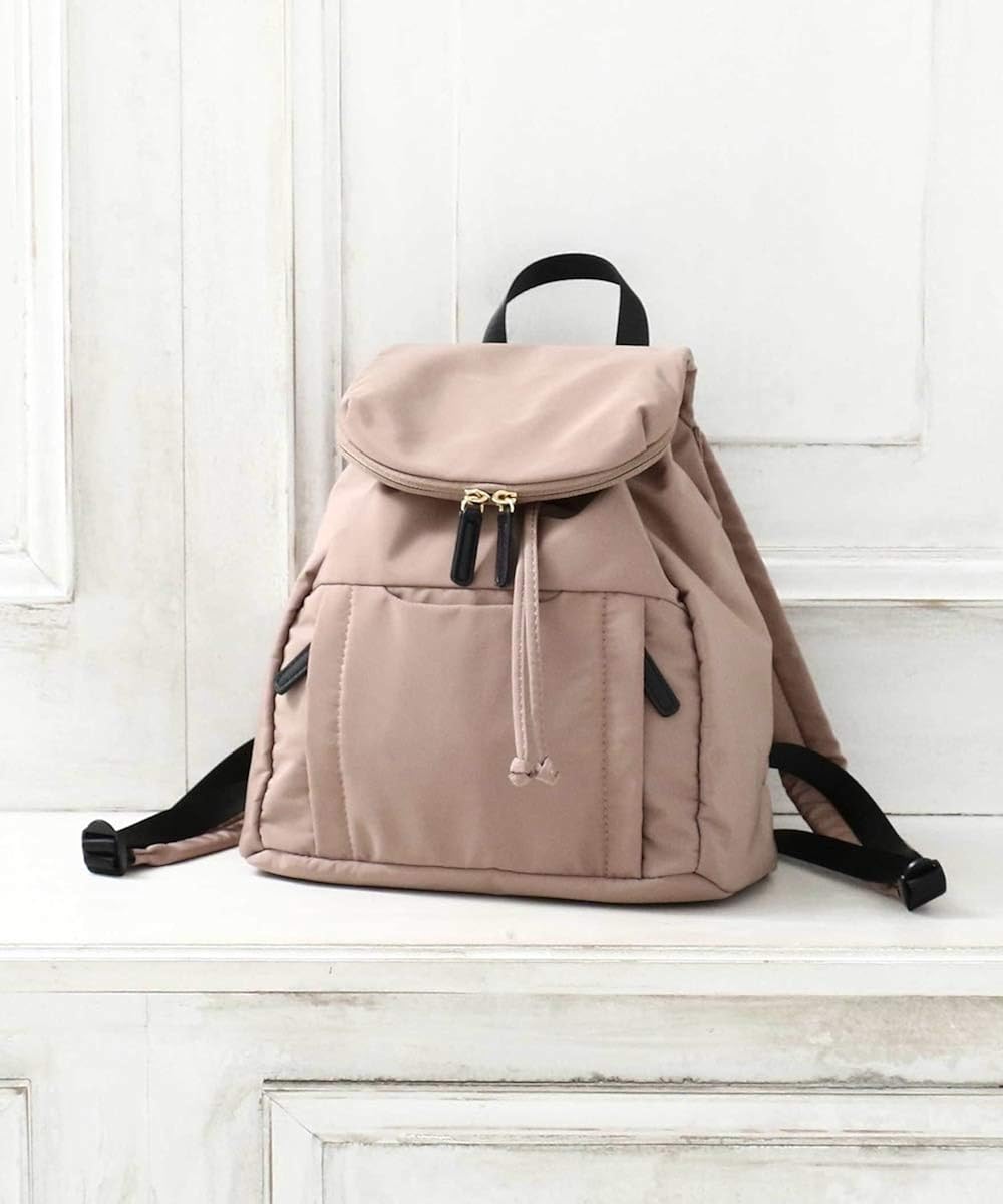 アフタヌーンティー・リビングの素材と資材にこだわった軽量リュックです。フロントには両サイドからものを入れられるファスナー付きポケットが備わっています。また、背負ったまま中身が取り出せる背面ファスナー付きなので、ものの取り出しが楽ちんですよ。