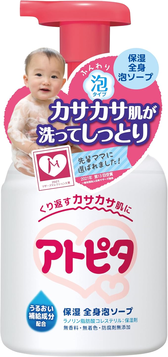 丹平製薬の人気ベビースキンケアシリーズ「アトピタ」の全身ソープです。クリーミーな泡立ちで、やさしく全身が洗えます。詰め替えがあるのでリピートしやすく、うるおいを与えながら洗えるのが良いですね。
