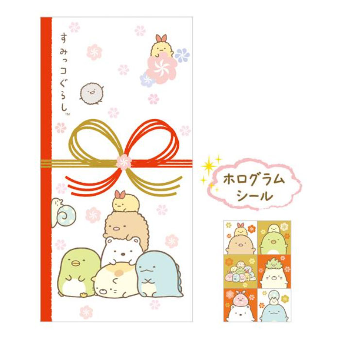 映画が大ヒットしたすみっコぐらしは、小学生低学年を中心に大人気になっています。すみっコたちがかわいいこちらのポチ袋は、キラキラのホログラムシールも付いていますよ。お年玉だけではなく、いろいろなお祝い事に使えます。