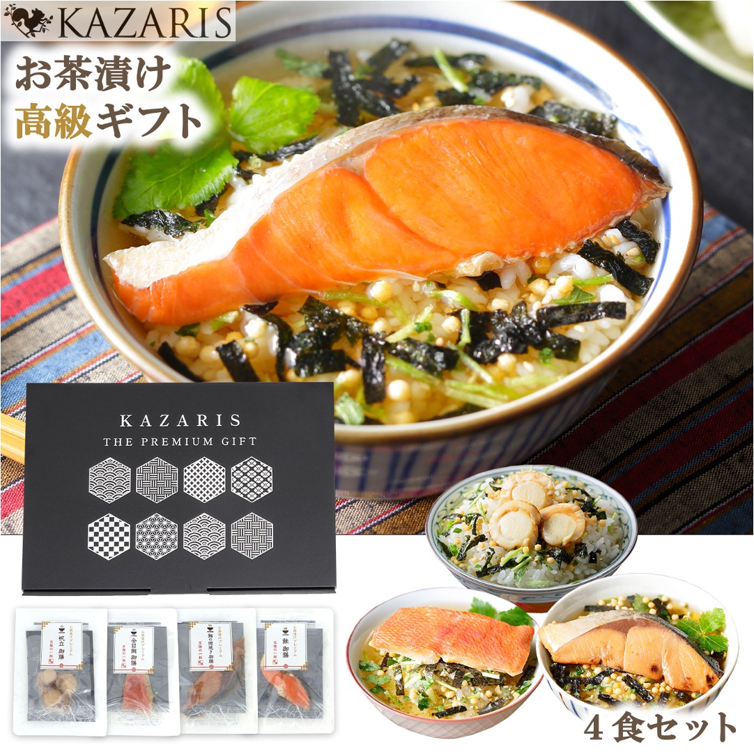 カザリスのお茶漬けギフトは、こだわりの食材を厳選し、生の魚を加圧加熱殺菌することで骨までやわらかく仕上げた高級茶漬けです。晩酌の〆も休日の朝食も、高級茶漬けなら料亭のような贅沢な気分を味わえます。手軽にリフレッシュできるプレゼントとしてもおすすめです。
