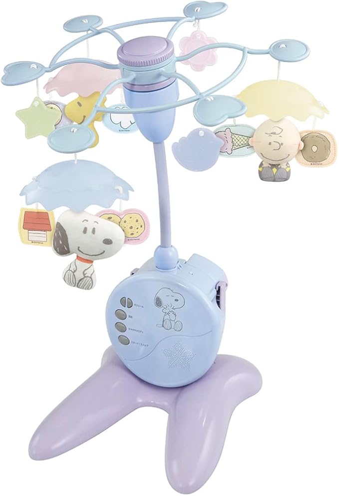 スヌーピーの人気キャラクターのマスコットがついたこちらのメリーは、ベッドメリーとフロアメリーとして使えます。折りたたみ式のベビーベッドにも取り付けができるので、お昼寝にも重宝します。