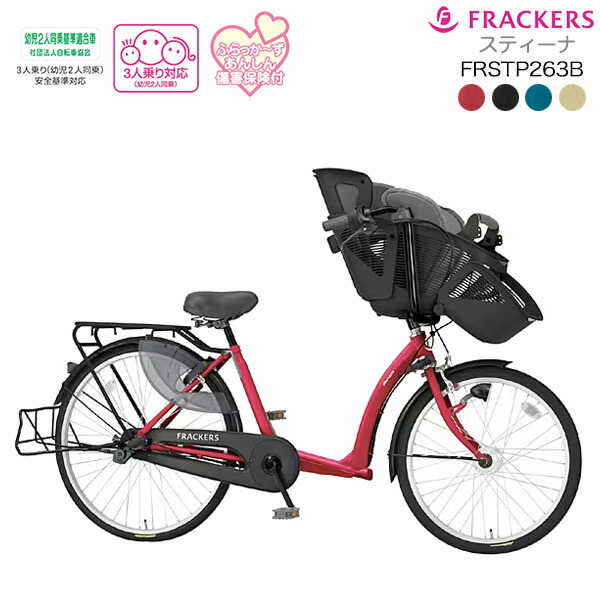 ふらっか~ずスティーナは、前輪は22インチ、後輪は26インチなので子どもを乗せやすく、軽快に走行できるのがポイントです。チャイルドシートは、5点式シートベルトやヘッドレスト&シートクッション、高さ調節できるハイバックなど、安全で快適に乗車できる機能が搭載されています。チャイルドシートの足乗せを調整すれば買い物カゴとしても使えるので、子どもが成長した後でもカゴ付き自転車に買い替えずに済みますね。