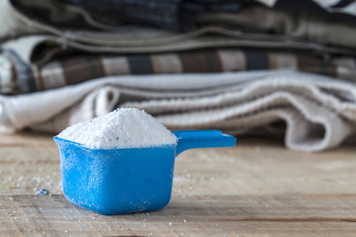 セスキ炭酸ソーダは、油汚れや皮脂・手垢を落とす効果があるといわれています。丸洗いの場合は水30Lにつき小さじ2~大さじ1、部分洗いの場合は水500mLに小さじ1の割合で溶かして使ってくださいね。素手で扱うと手荒れの原因になる場合があるため、ゴム手袋を使用して洗濯するようにしましょう。