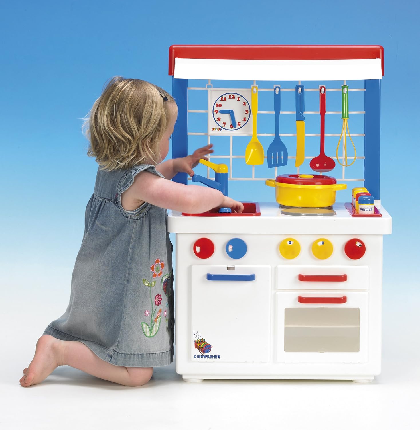 複雑すぎずシンプルなつくりのキッチンセンターなので、小さな子どもでも遊びやすくギフトにも最適です。アイテムは、お料理に必要なお鍋、フライパン、調味料入れなどがセットになっているので、よりリアルなごっこ遊びができますね。