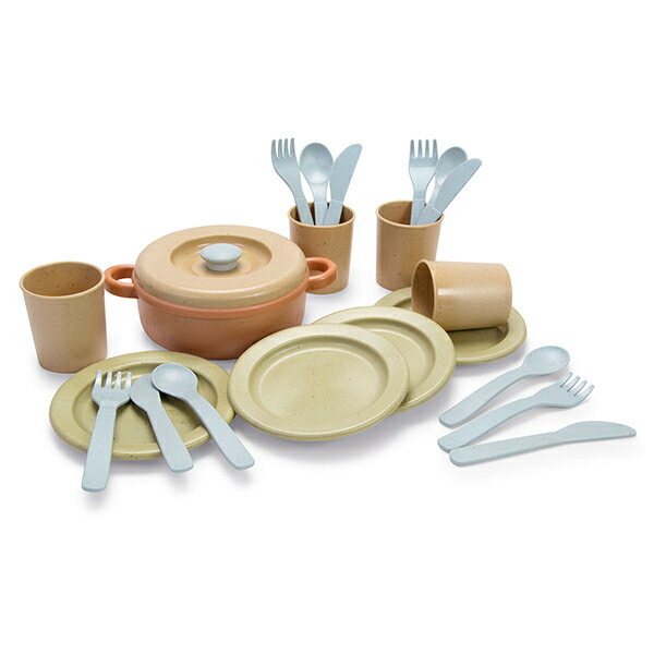 I'm green ディナーセットは、木の温もりを感じられるやわらかな色合いのおままごとセットです。北欧公認環境ラベル「スワンマーク」を取得した環境にやさしいおもちゃといえるでしょう。