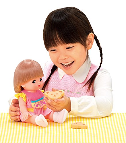 こちらは対象年齢が3歳からとなっています。メルちゃんにご飯を食べさせられるおしょくじお世話セットです。セット内容は、ピンクのワンピースを着たメルちゃん人形と、黄色いワンピースにエプロン(スタイ)、くしとミルク、スプーンと離乳食が入ったカップになっています。ママが教えた食事のマナーを子どもがさらにメルちゃんに教えてくれるでしょう。