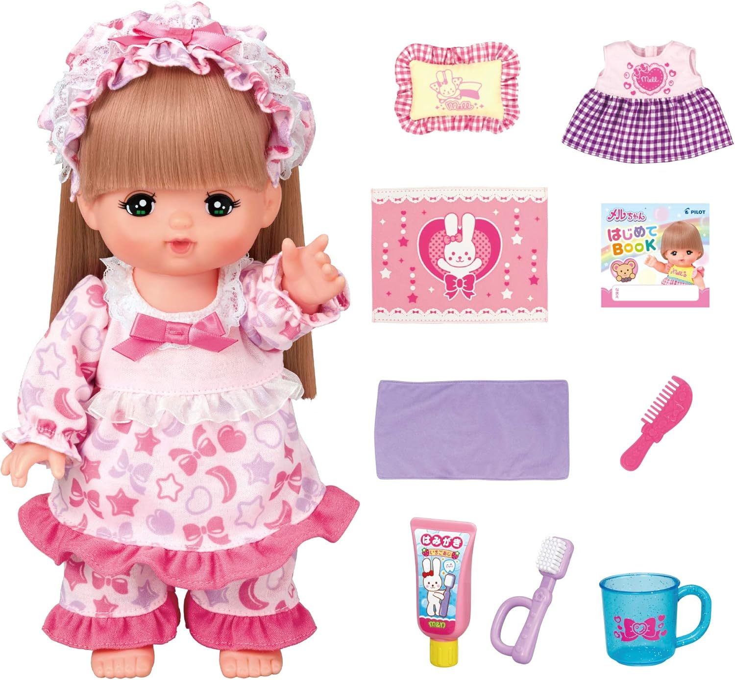 普通のメルちゃんに比べると、髪がロングタイプのメルちゃんになります。ヘアアクセサリーや髪を結んであげるなど、オシャレを楽しむならこちらのメルちゃんも良いでしょう。セット内容にはかわいい靴下やくし、洋服も付いています。