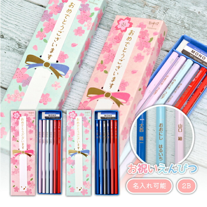 入学祝いにぴったりなトンボ鉛筆のお祝いえんぴつです。ご祝儀袋をイメージした春らしいパッケージは、ブルーとピンクから選べます。鉛筆は名前を印字してくれるので、特別感がありますよ。思い出に残る入学祝いになるでしょう。