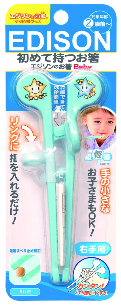 普通のエジソンのお箸に比べてとても軽く、扱いやすくなってます。連結部が左右にばりっとわかれるので、洗うのもかんたんです。箸先が広めで、滑り止め加工がついており、初めての赤ちゃんも無理なく練習できそうですね。