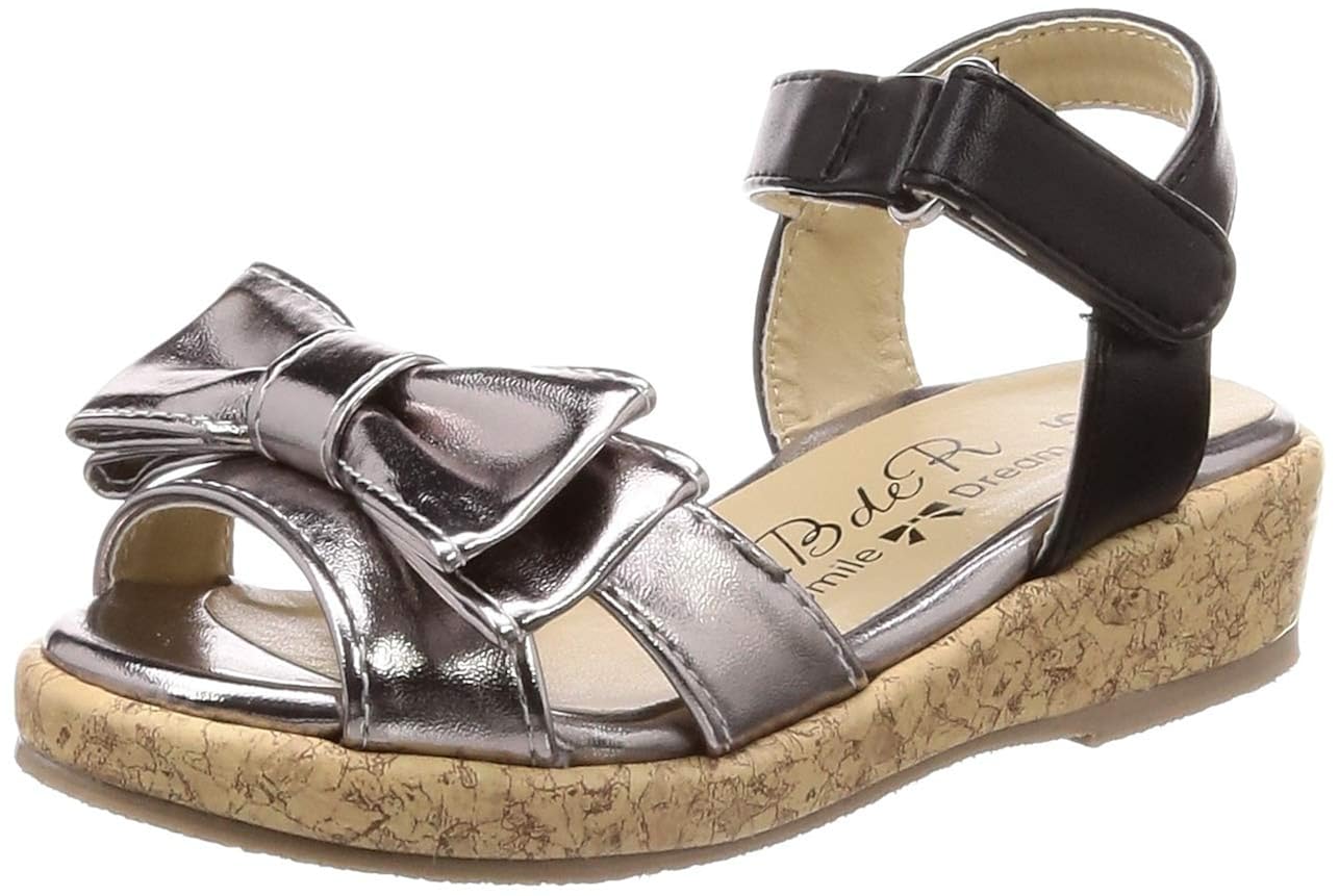 ビーデアールのサンダルは、キラキラしたメタリック素材にリボンが付いたデザインです。ヒールがあっても歩きやすいという口コミがありますよ。マジックテープ式なので、子どもがひとりで脱ぎ履きしやすいタイプです。