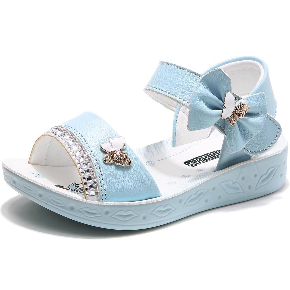 キラキラしたおしゃれなチャームが付いた、女の子が好みやすいデザインのサンダルです。カラーバリエーションにブルー系があるので、ピンクなど暖色系が苦手な子どもにもおすすめです。軽量の合成ゴムを使用したすべりにくい作りが特徴ですよ。