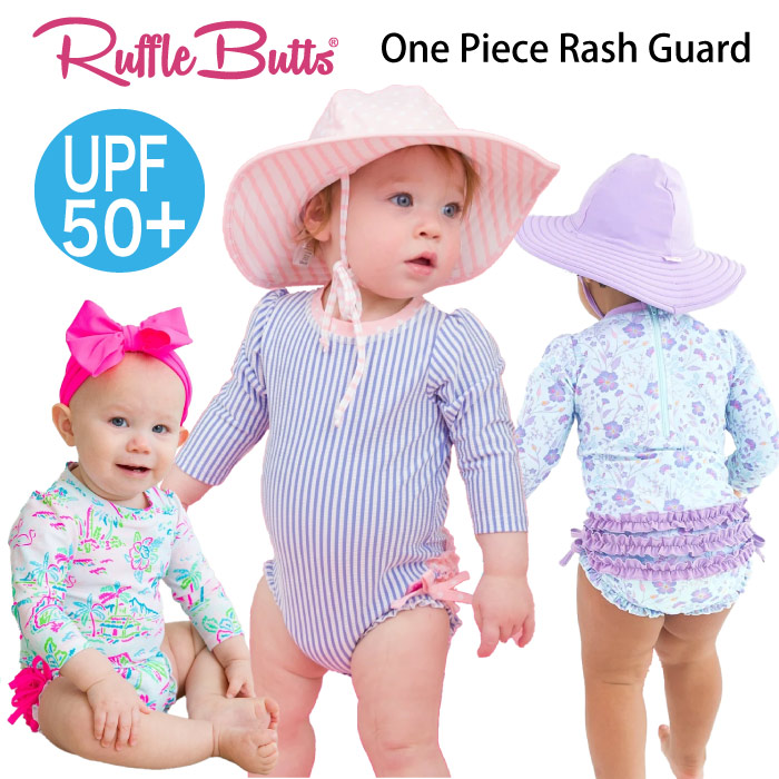 ラッフルバッツのワンピースラッシュガードは長袖のため、紫外線が気になる方におすすめです。ファスナーやおむつ替えスナップがあり、着替えやすい工夫がされていますよ。
