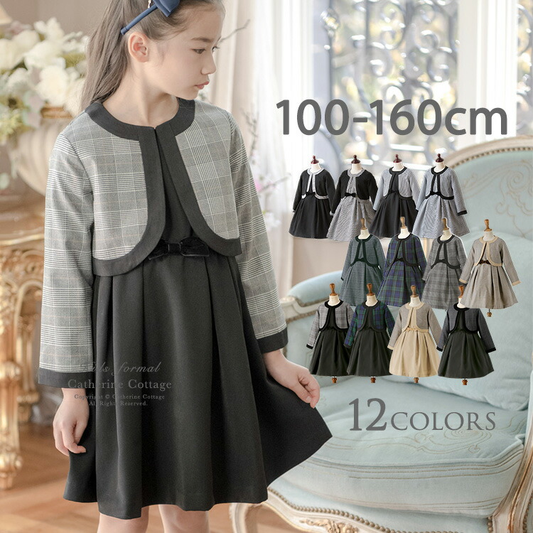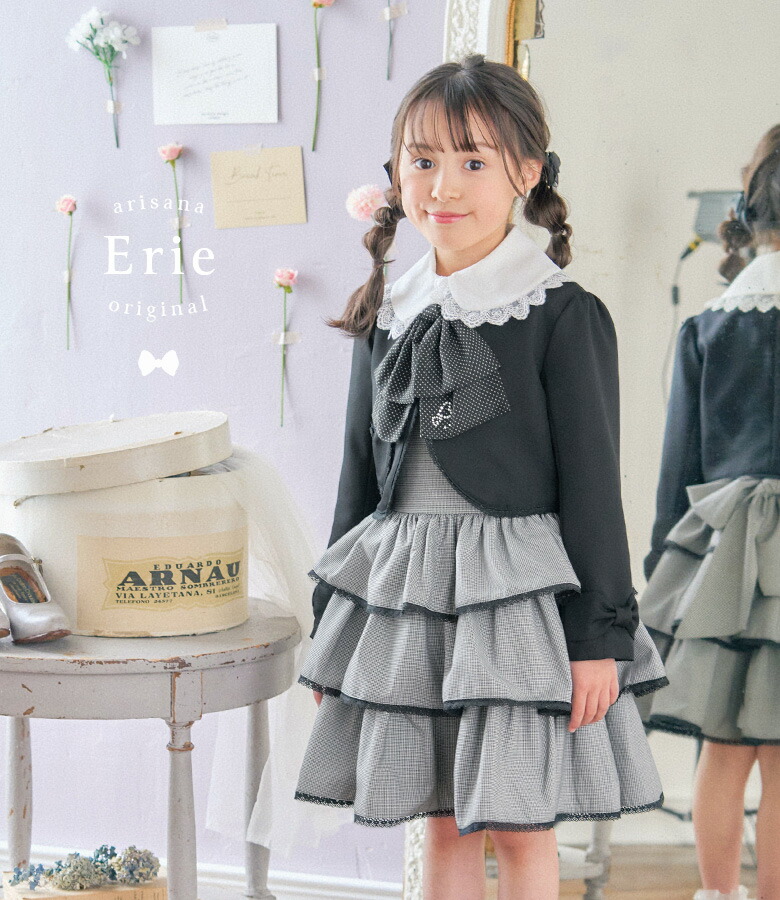 チェックや千鳥格子模様のボレロに、肩が隠れる半袖のワンピースがセットになったアンサンブルスーツです。卒園式にぴったりな、落ち着きあるデザインで、清楚でシックなカラーでまとめられているため、お姉さんらしく上品に仕上がります。あらゆるフォーマルシーンあわせられます。