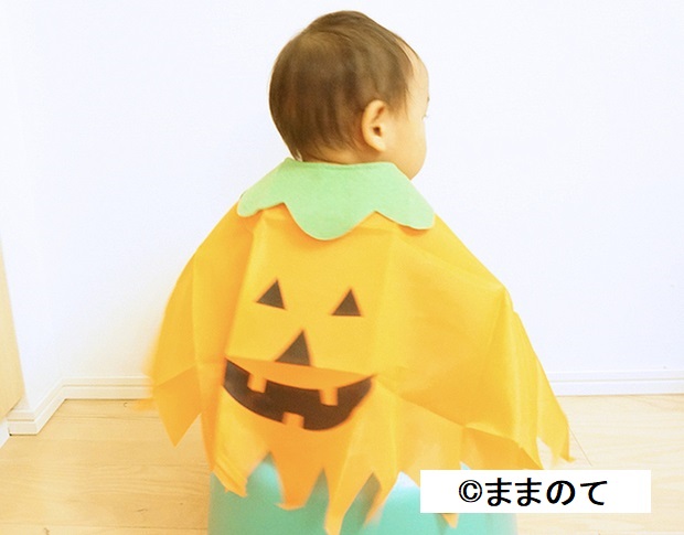 ハロウィンといえば、かぼちゃのおばけが定番です。かぼちゃのロンパースなどもかわいらしいですが、マントタイプもおすすめです。服をわざわざ脱がなくても、赤ちゃんの機嫌が良いときにサッと羽織らせるだけでハロウィン気分が楽しめます。