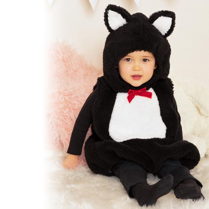 上からかぶるワンピースタイプの衣装は、着替えが苦手で不機嫌になりがちな赤ちゃんでも使いやすいのでおすすめです。いつもの服の上からかぶるだけで手軽にかわいらしい仮装を楽しめますよ。黒猫がテーマの仮装なので、インナーやズボンなどを黒で揃えると統一感が出るでしょう。