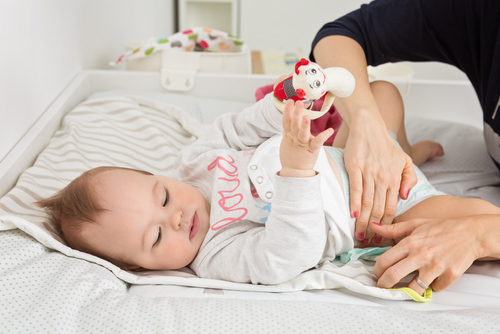 手で何かをつかめるようになったら、おもちゃなどを手に持たせてあげながらおむつを替えてみてください。赤ちゃんの気が紛れている間に、素早くおむつを替えることができます。