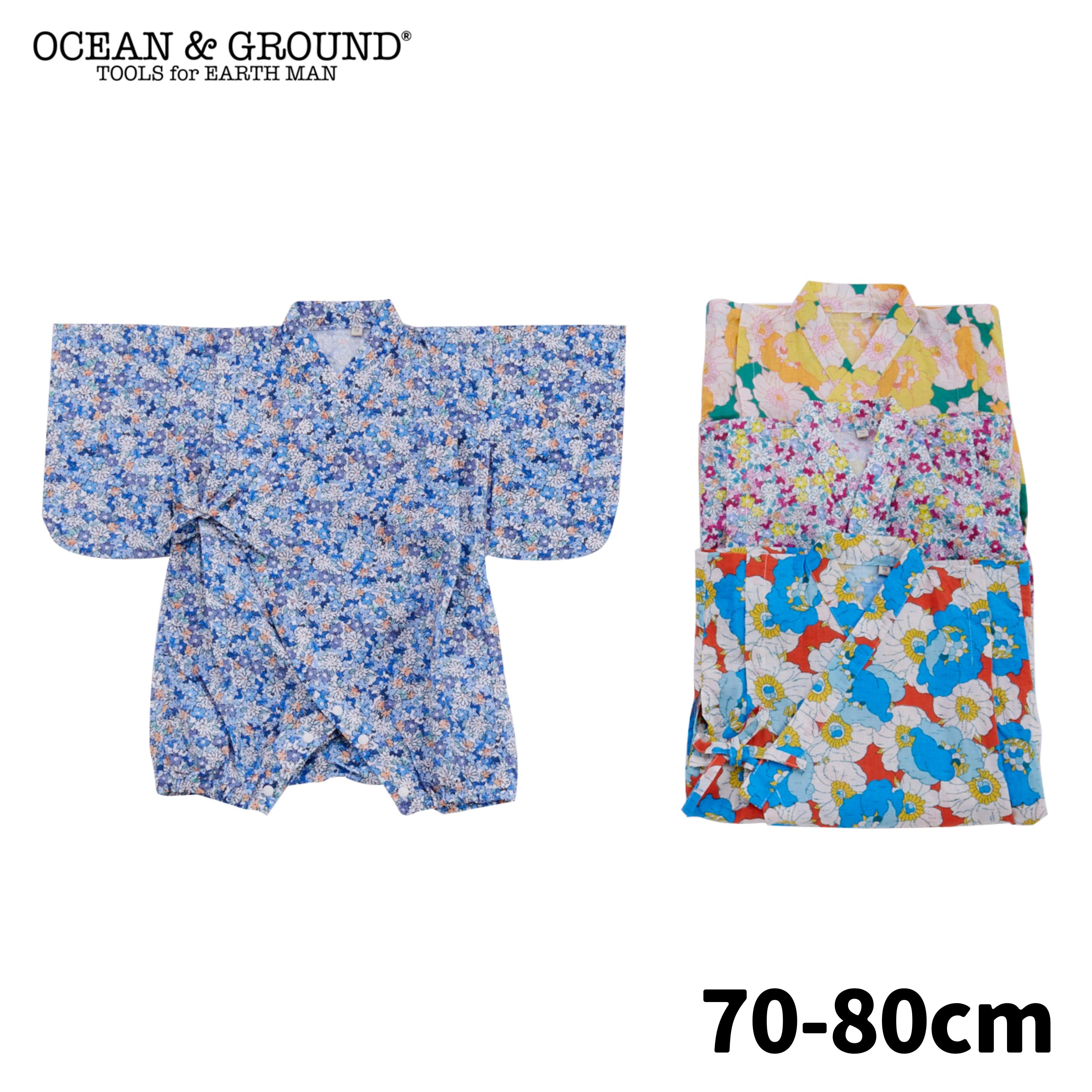 人気ブランドオーシャン&グラウンドの、花柄デザインの甚平です。古典的な淡い色の和柄の甚平とは異なり、鮮やかでカラフルな色合いが印象的で、夏祭りなどでは主役になれそうなデザインですよね。裾はプラスチックのホックで留めるだけなので、普段のロンパースと同じように脱ぎ着ができます。