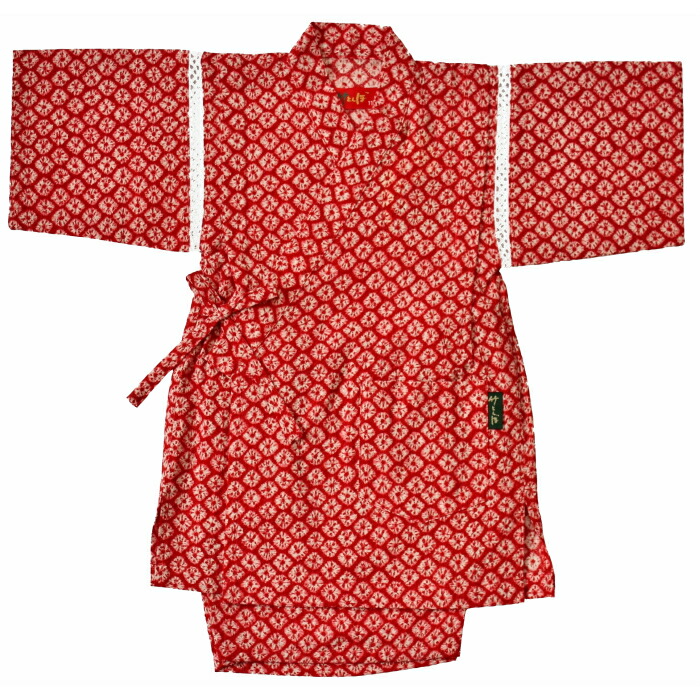子どもらしいかわいらしさが引き立つ真っ赤な甚平は、昔ながらの絞りの手法でつくられ、プリントとは異なる風合いが感じられます。昔ながらの細身シルエットなので、ゆったり着たいときはワンサイズ大きめを選ぶと良いでしょう。
