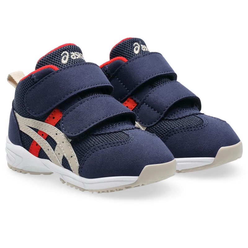 かかとを包み込む立体的な中敷き、扇形のつま先、屈曲性にすぐれたソールなど、足が発達する乳幼児期の足に合わせた機能性も特長です。