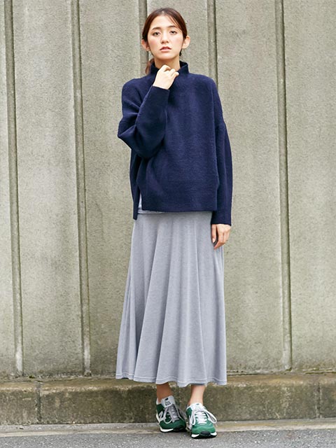 細かいプリーツはどの角度から見ても美しいシルエットになっていて、ハイウエスト設計ですらりと見えます。よりフォーマルな雰囲気を出したいなら黒、普段着としても活用したいならブルーグレーがおすすめですよ。