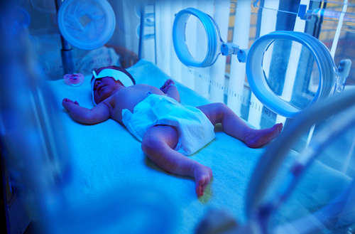 強い黄疸の場合は、医療機関で光線療法を行います。目隠しをして太陽光や人工的な青や緑色の光を当てます。光線療法を行うことによってビリルビンの構造が変化し分解されるため、尿や便と一緒に排泄されるようになり、黄疸が治まります。