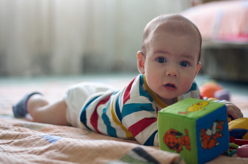 赤ちゃんは腹ばいになって顔を持ち上げることで視野が広くなり、手を伸ばして気になるおもちゃを触ることもできるようになります。また、うつ伏せから仰向けへの寝返り返りもできるようになると、赤ちゃんは転がりながらの移動も楽しめるようになります。