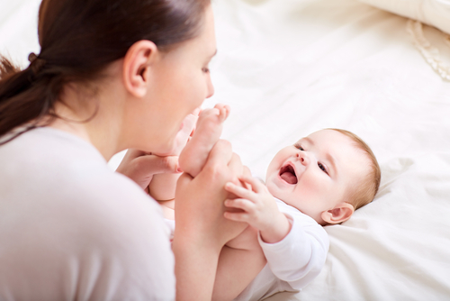 「赤ちゃんの遊び」と構えてしまうと、何をしたら良いか悩んでしまいますよね。あまり難しく考えず、お世話のときに身体をなでたり、赤ちゃんの身体をくすぐったり、触れ合う時間を増やすようにしましょう。