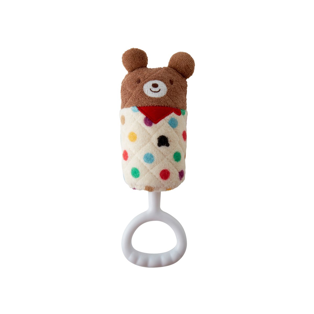 優しい音色とかわいいデザインが人気のラトルです。カバーは取り外しができ、洗濯機で洗えるので、いつでも清潔に使えますね。生後3ヶ月頃はママやパパがラトルを振ってあやしてあげましょう。生後6ヶ月頃になると自分でラトルを振って遊ぶようになりますよ。出産祝いのプラスワンやプチギフトにおすすめのアイテムです。