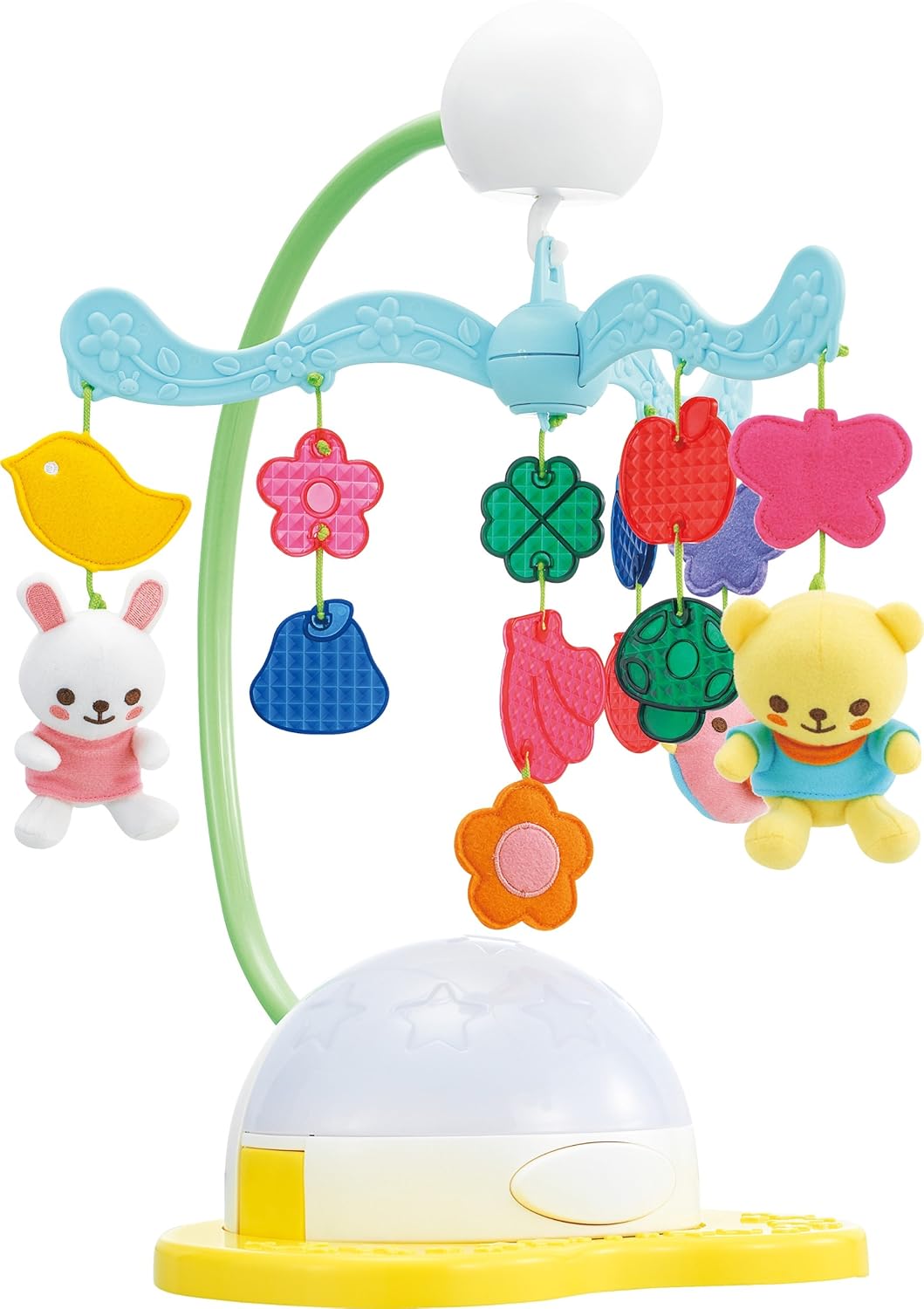 赤ちゃんの近くに置いて使用するメリーです。豊富なメロディと回転する飾りが赤ちゃんを楽しませてくれますよ。夜でも使えるお世話ライトを搭載しているので、夜中の授乳やおむつ替えにも便利です。出産祝いにも喜ばれるアイテムですね。