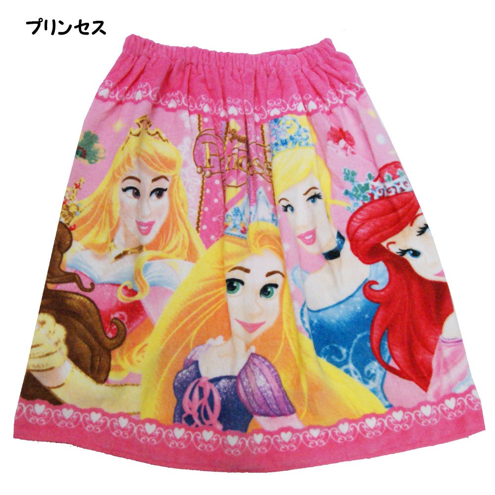 女の子に人気が高い、ディズニープリンセスのラップタオルです。ゴム部分に2個のスナップが付いているので、細かくサイズを調整できます。アリエルやミニーマウスの柄もあります。