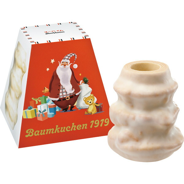 昔ながらの製法でつくられたユーハイムオリジナルのバウムクーヘンです。先がだんだんと細くなるこの形状は、ドイツの森の木をイメージしているのだそう。サンタクロースの乗ったそりが、森に降る雪の中を進む情景が目に浮かびますね。サンタクロースのパッケージに気分も高まります。
