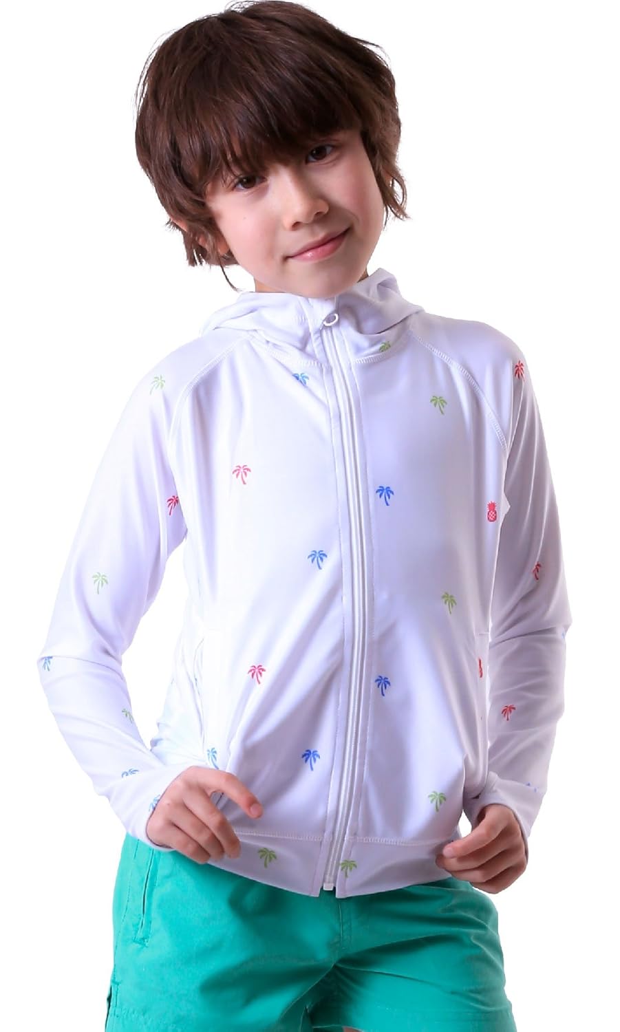 アウトドアブランドColumbiaのフルジップフーディは、紫外線カット機能だけでなく吸水速乾機能や冷却効果を兼ね備えた便利なウェアです。さらっとした着心地が続くので、アウトドアや水遊びなどさまざまな場面で活躍しますよ。大人用サイズもあるのでパパとおそろいコーデを楽しんでみてはいかがでしょうか。