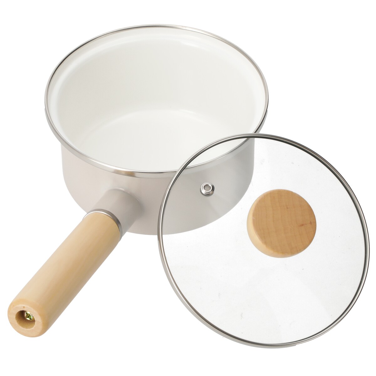 富士ホーローのミニソースパンは、目盛りと便利な2種類の蓋がついています。鍋の内側に100ccと200ccの目盛りがついているので、水を量るときに便利ですよ。持ちやすい木製のハンドルは温かみがあります。
