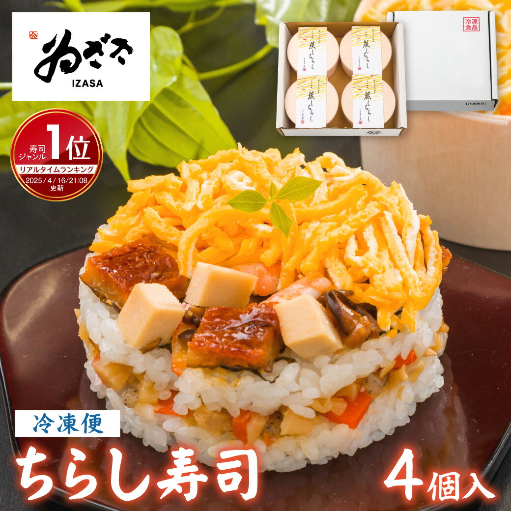 ちらし寿司をせいろに入れ、蒸して温かくしてから食べる伝統的な「蒸し寿司」を手軽に食べられるゐざさの蒸し寿司のセットです。レンジでチンするだけで食べられます。穴子・海老・錦糸卵や八目の野菜が入り、さまざまなお祝いごとにおすすめです。