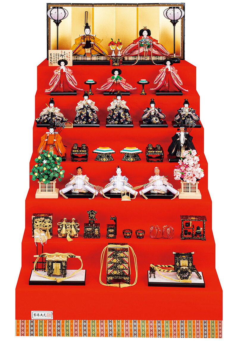七段飾りの雛人形や小道具を手にとって雛壇に並べることで、子どもはよりひな祭りを感じることができるのではないでしょうか。吉徳の七段飾りは、男雛や女雛だけではなく、三人官女や五人囃子・小道具などすべてがそろったセットです。