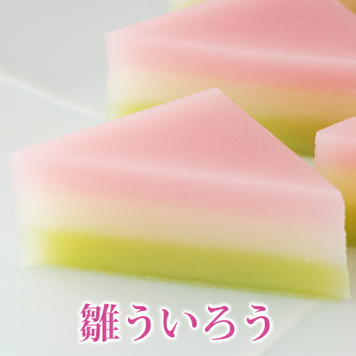 滋賀県近江の老舗「御菓子司大彌」の雛ういろうは、ふわふわでやわらかく、なめらかな舌触りの和菓子です。菱餅を思わせる緑・白・赤の三色が春の情景を描き、見た目にも華やかです。
