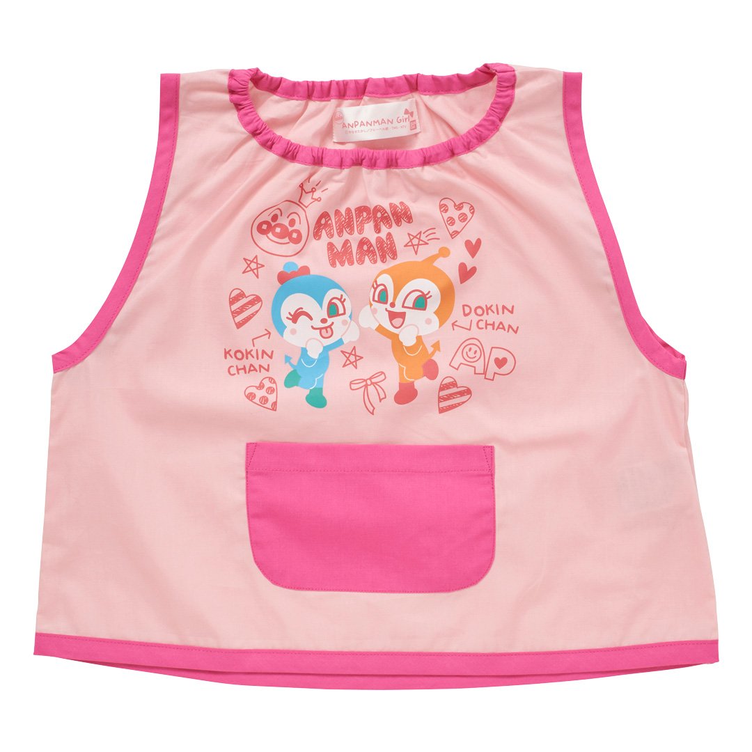 ドキンちゃんとコキンちゃんが描かれた、西松屋のノースリーブスモックです。大きめの前ポケットが付いているので、年少くらいの小さな子どもも使いやすい大きさといえるでしょう。