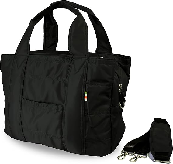 外ポケットと内ポケットが充実していて、このバッグひとつで必要なものが持ち運べる大容量のマザーズバッグです。バッグは3層式で整理整頓がしやすい構造です。上質ナイロン製で国内の強度試験をクリアしており、丈夫で長持ちします。撥水加工が施されていて、汚れに強いのもポイントです。