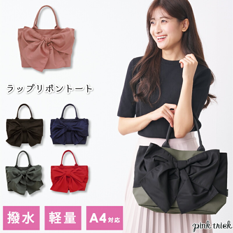 洗練されたガーリッシュをコンセプトにしたピンクトリックのトートバッグです。リボンを贅沢にあしらった大人かわいいデザインは、フォーマルな場にもぴったりです。結婚式のサブバッグとしても使えますよ。