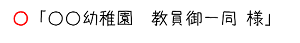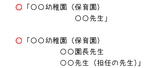 また、年賀状の宛名に「〇〇先生」「教員御一同 様」とつける場合は、「〇〇幼稚園」のあとに「御中」は必要ありませんよ。